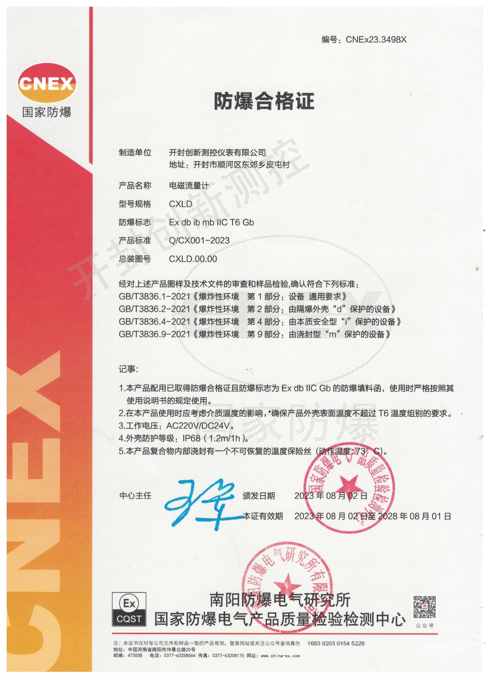 熱式氣體質(zhì)量流量計(jì)防爆合格證